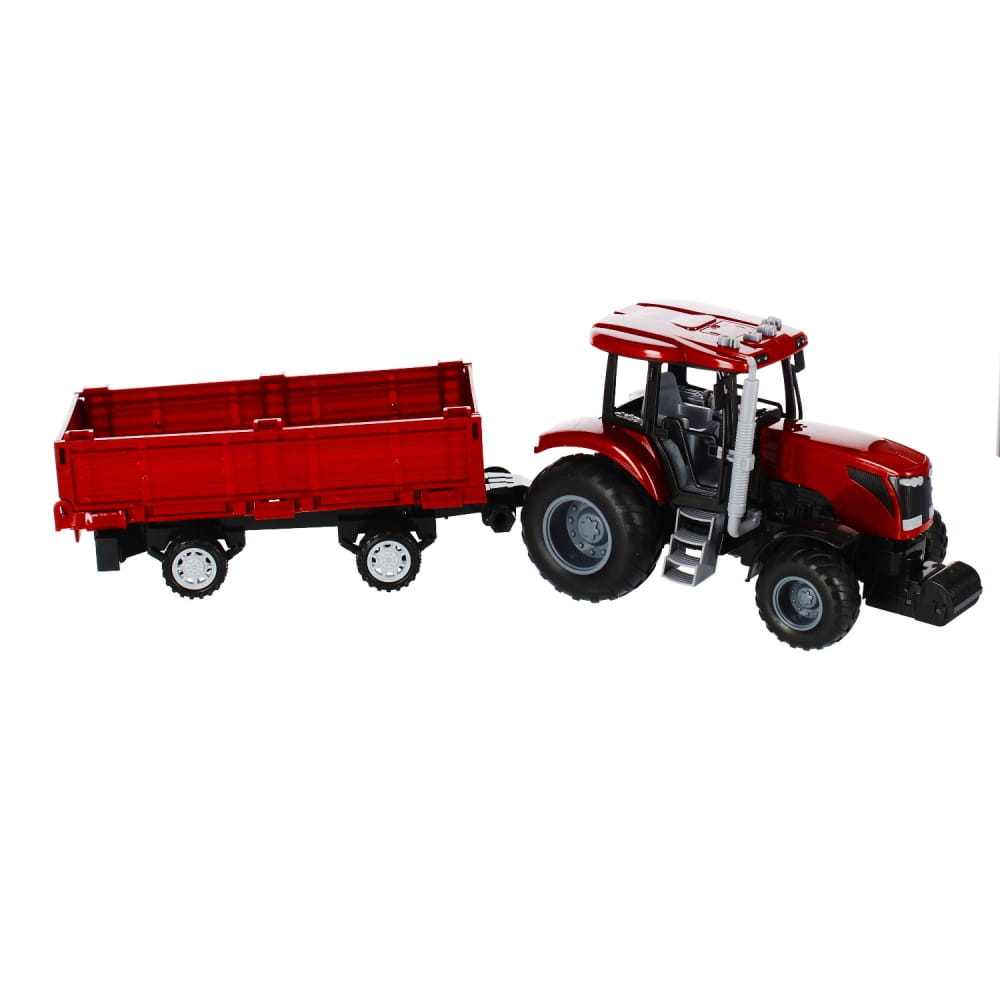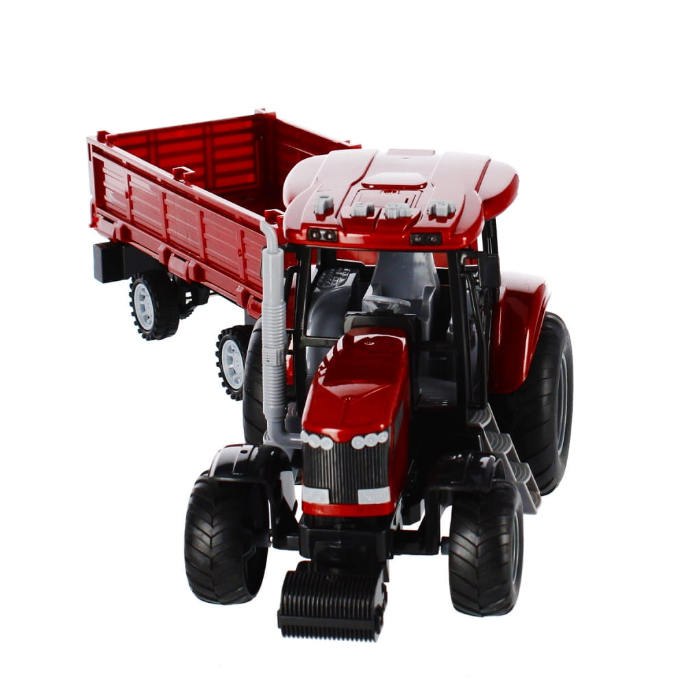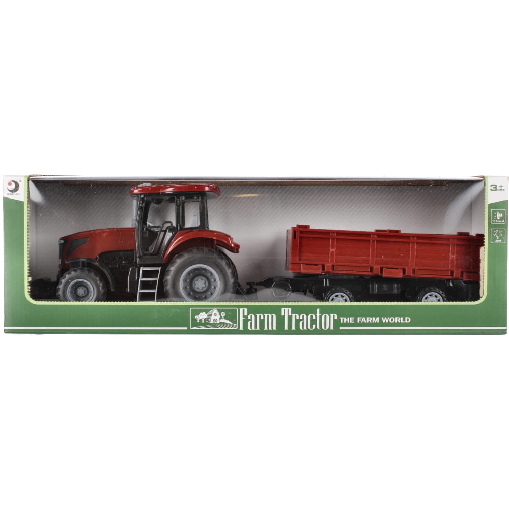 Zalety produktu: traktor z przyczepą posiada funkcje pull&back dzięki czemu po pchnięciu go do przodu kontynuuję jazdę samodzielnie, traktor posiada efekty świetlne migające światełka w kabinie rolnika oraz efekty dźwiękowe. Wciśnij jeden z czterech przycisków a usłyszysz: dźwięk zapalanego silnika, cofanie traktora, alarm, muzykę która umili prace rolnika, odgłosy zwierząt. Do traktora dołączona jest przyczepa na której możesz przewieź zbiory z pól. Mamy coś dla młodego Rolnika. Traktor z metaliczną powłoką zadowoli nawet najbardziej wymagające dzieci Posiada gumowe koła. Zawartość zestawu: traktor z przyczepa. Wymiary/waga/baterie: wymiary produktu dł. x wys. x gł. cm : 24x15x13, wymiary opakowania dł. x wys. x gł. cm : 52x17x13 , waga produktu bez opakowania kg : 0,47 kg, waga produktu w opakowaniu kg : 0,77kg, wymaga zasilania bateriami 3 x AG13- załączone do zestawu. Produkt przeznaczony dla dzieci w wieku: 3 .Pakowany w kartonik z okienkiem.