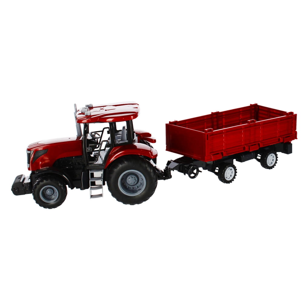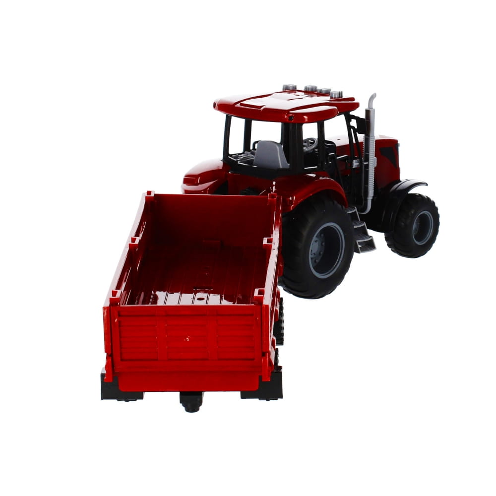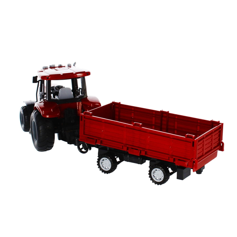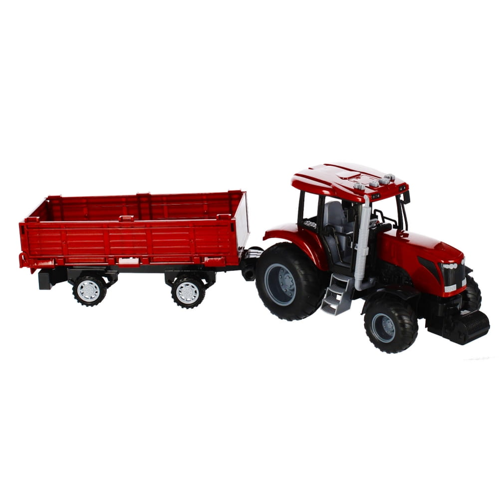Zalety produktu: traktor z przyczepą posiada funkcje pull&back dzięki czemu po pchnięciu go do przodu kontynuuję jazdę samodzielnie, traktor posiada efekty świetlne migające światełka w kabinie rolnika oraz efekty dźwiękowe. Wciśnij jeden z czterech przycisków a usłyszysz: dźwięk zapalanego silnika, cofanie traktora, alarm, muzykę która umili prace rolnika, odgłosy zwierząt. Do traktora dołączona jest przyczepa na której możesz przewieź zbiory z pól. Mamy coś dla młodego Rolnika. Traktor z metaliczną powłoką zadowoli nawet najbardziej wymagające dzieci Posiada gumowe koła. Zawartość zestawu: traktor z przyczepa. Wymiary/waga/baterie: wymiary produktu dł. x wys. x gł. cm : 24x15x13, wymiary opakowania dł. x wys. x gł. cm : 52x17x13 , waga produktu bez opakowania kg : 0,47 kg, waga produktu w opakowaniu kg : 0,77kg, wymaga zasilania bateriami 3 x AG13- załączone do zestawu. Produkt przeznaczony dla dzieci w wieku: 3 .Pakowany w kartonik z okienkiem.