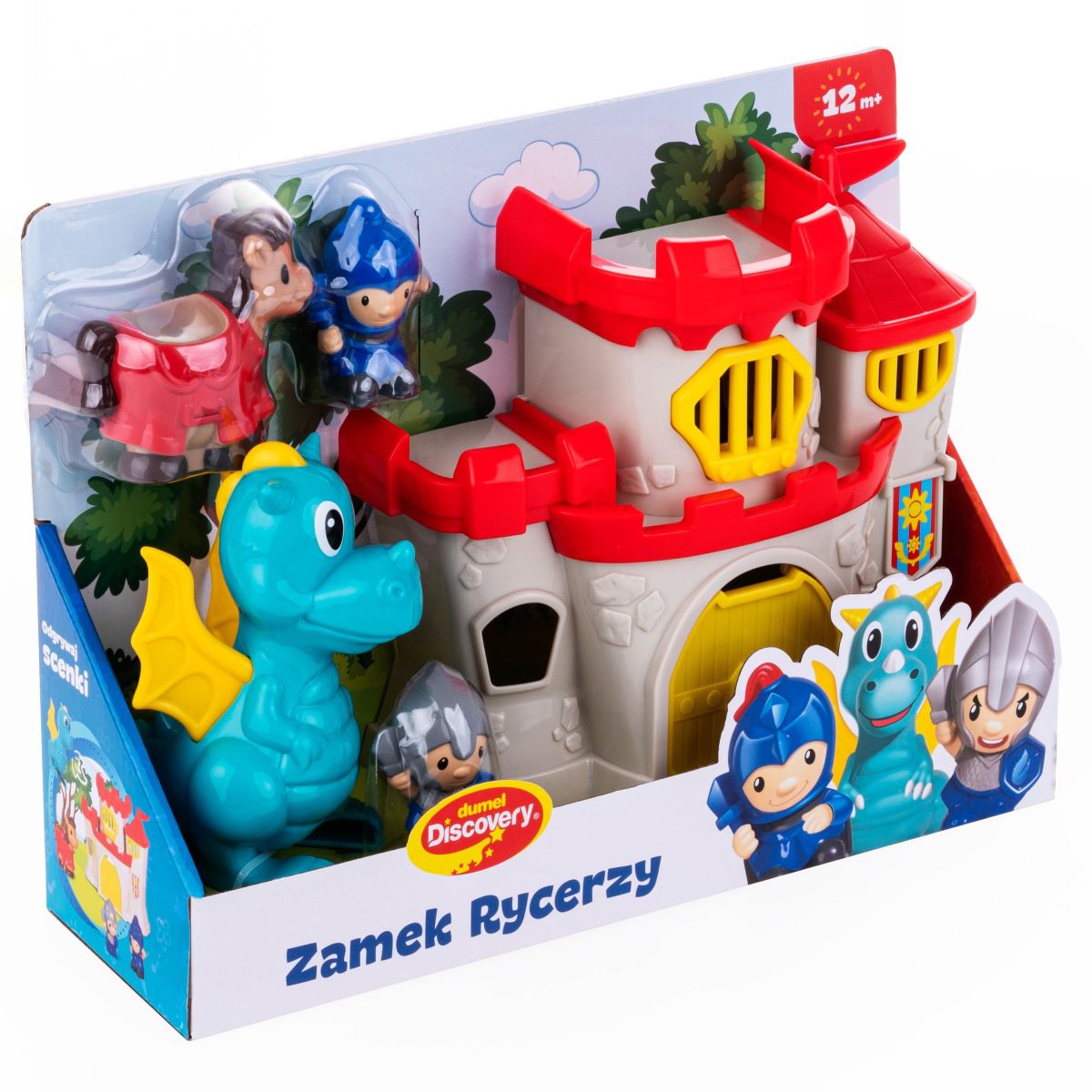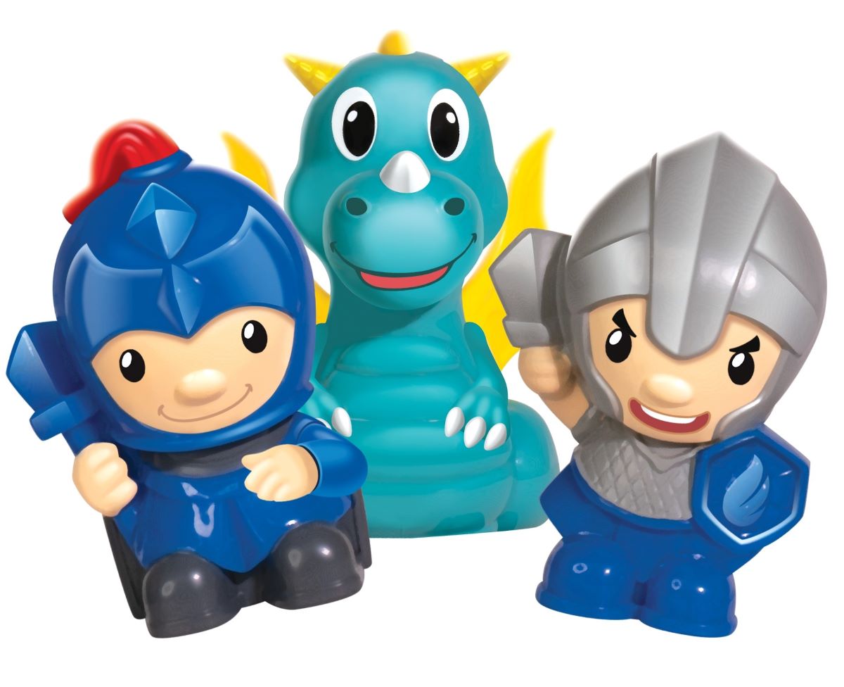 - w zestawie 5 elementów: 1 x zamek, 2 x rycerz, 1 x koń, 1 x smok;