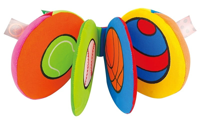 Wybierz właściwe zabawki rozwojowe dla Twojego dziecka. Zawieszka książeczka piłka to zabawka, którą można przywiesić do wózka czy fotelika. Każda strona zawieszki ukazuje inną piłkę: do tenisa, piłki nożnej, golfa, do baseballa, do koszykówki i zwykłą - do zabawy. Dzięki tej zawieszce maluszek nauczy się odróżniać różne rodzaje piłek. Po naciśnięciu pierwszej strony książeczki zabawka piszczy, a każda inna strona po dotknięciu szeleści, dzięki temu stymuluje zmysły słuchu dziecka. Miłe dla oka kolory rozwijają wzrok, a przyjemny materiał dotyk. Zabawka posiada gryzak, który ukoi Twoje dziecko i pomoże mu się uspokoić w czasie ząbkowania. Marka K's Kids stworzyła Trójkąt Umiejętności, który wskazuje jakie umiejętności rozwija dziecko bawiąc się daną zabawką. Walory zabawek podzielono na wspierające rozwój fizyczny, poznawczy oraz społeczny. Zabawka wspiera: 1. Rozwój fizyczny zmysły – zabawka ma wyraziste, przyjemne dla oka kolory, te kontrastowe barwy przyciągają uwagę maluszka rozwijając jego zmysł wzroku; przyjemny w dotyku materiał pozwala na rozwijanie zmysłu dotyku motoryka mała – chwytanie sznurków rączkami i łapanie stron książeczki rozwijają motorykę małą motorykę dużą maluch rozwija w czasie zabawy książeczką - próby dosięgnięcia zabawka, chwytanie jej - takie czynności rozwijają ruchy całego ciała 2. Rozwój społeczny emocje - maluszek może bawić się książeczką razem z innymi osobami, oprócz tego gryzak pozwoli dziecku na uspokojenie się poczucie własnej wartości - dziecko ucieszy się, że dotykając książeczkę usłyszy dźwięki, wzrośnie tym samym jego samoocena