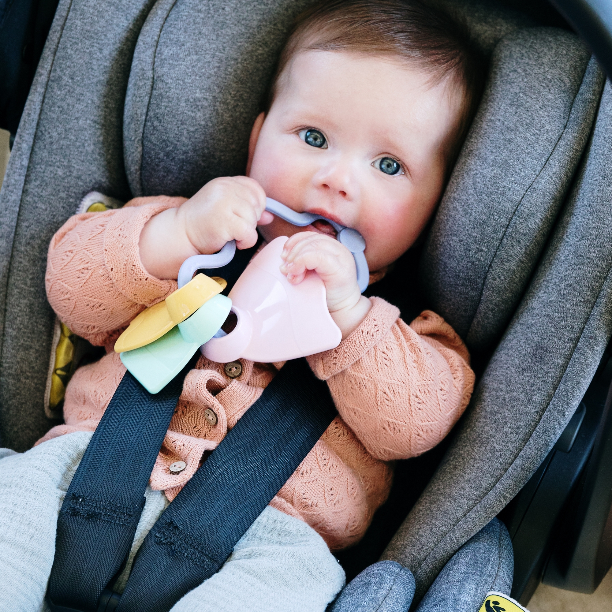 - Grzechotka ma kształt chmurki z 3 płetwami i pełni również funkcję gryzaczka. Płetwy mają różne tekstury i kształty, aby stymulować zmysł dotyku.