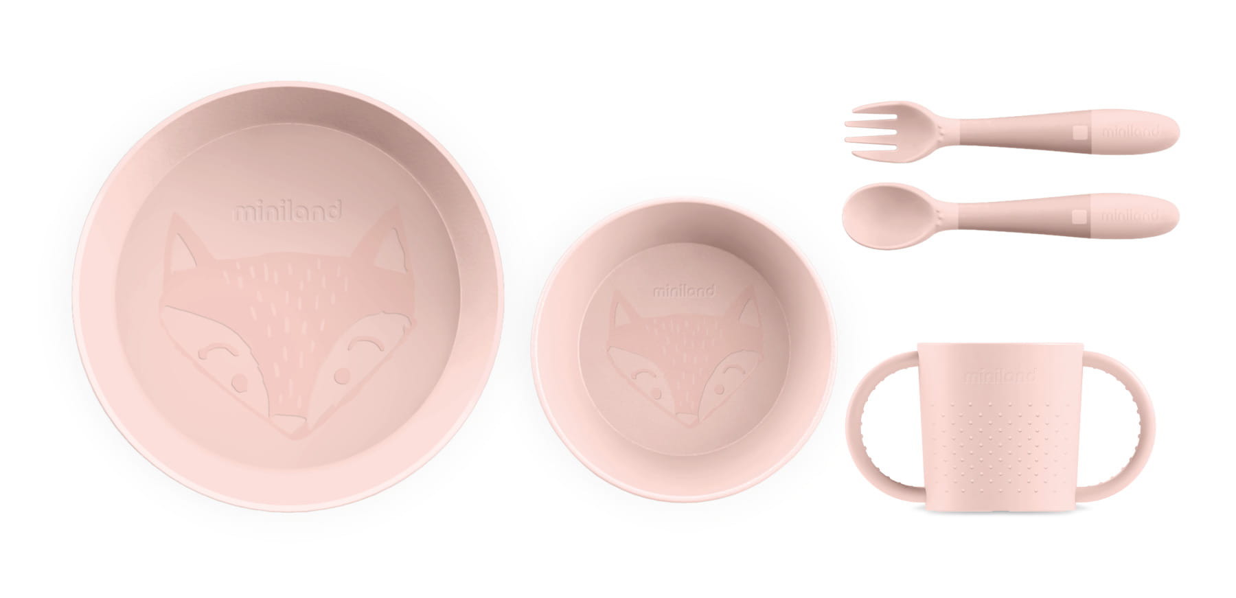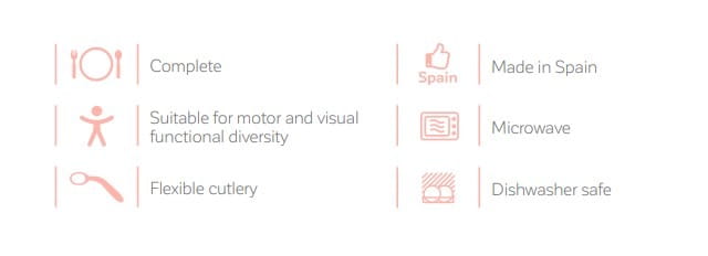 Niewielkie rozmiary łyżki i widelca pozwolą maluchom nauczyć się jeść samodzielnie. Oprócz tego lekki i łatwy do trzymania kubek dołączony do zestawu doskonale nadaje się do nauki samodzielnego picia. Dzięki swojej elastyczności może być używany zarówno przez dzieci leworęczne jak i praworęczne.