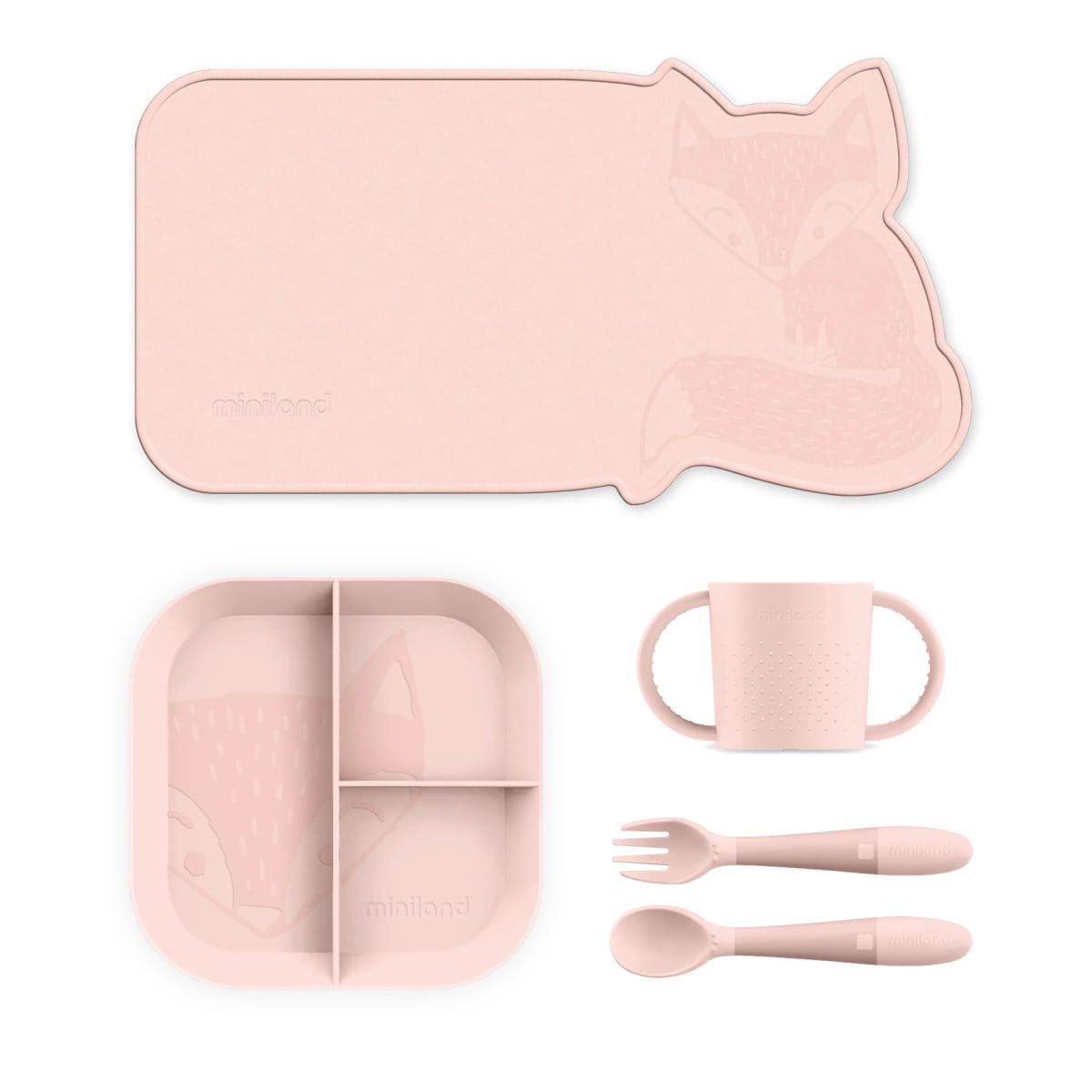 Niewielkie rozmiary łyżki i widelca pozwolą maluchom nauczyć się jeść samodzielnie. Oprócz tego lekki i łatwy do trzymania kubek dołączony do zestawu doskonale nadaje się do nauki samodzielnego picia. Dzięki swojej elastyczności może być używany zarówno przez dzieci leworęczne jak i praworęczne.