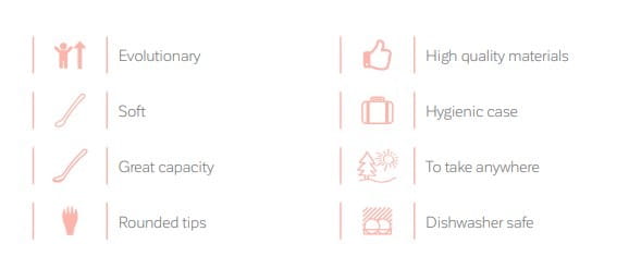 Komplet sztućców jest produkowany w Hiszpanii z materiałów najwyższej jakości, co gwarantuje, że sztućce są zarówno bardzo wytrzymałe, jak i odporne na najbardziej niesforne maluchy.
